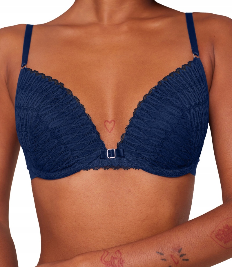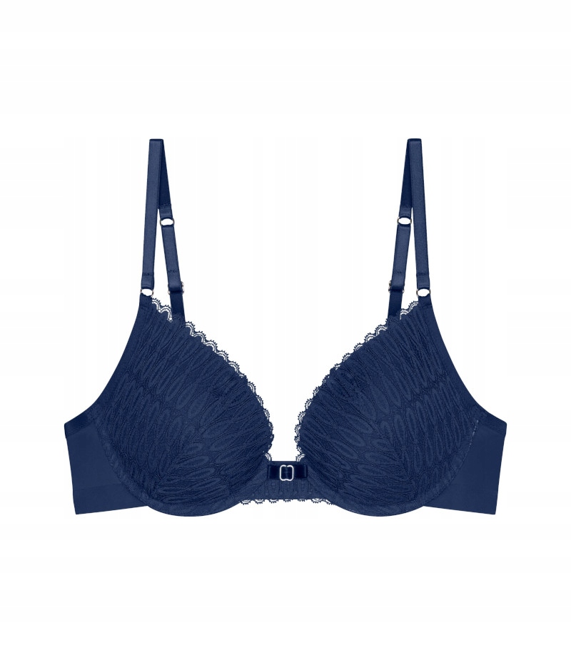 - Biustonosz na fiszbinach z miseczkami wyprofilowanymi grubszą gąbką typu push-up, który pięknie zaokrągli biust.