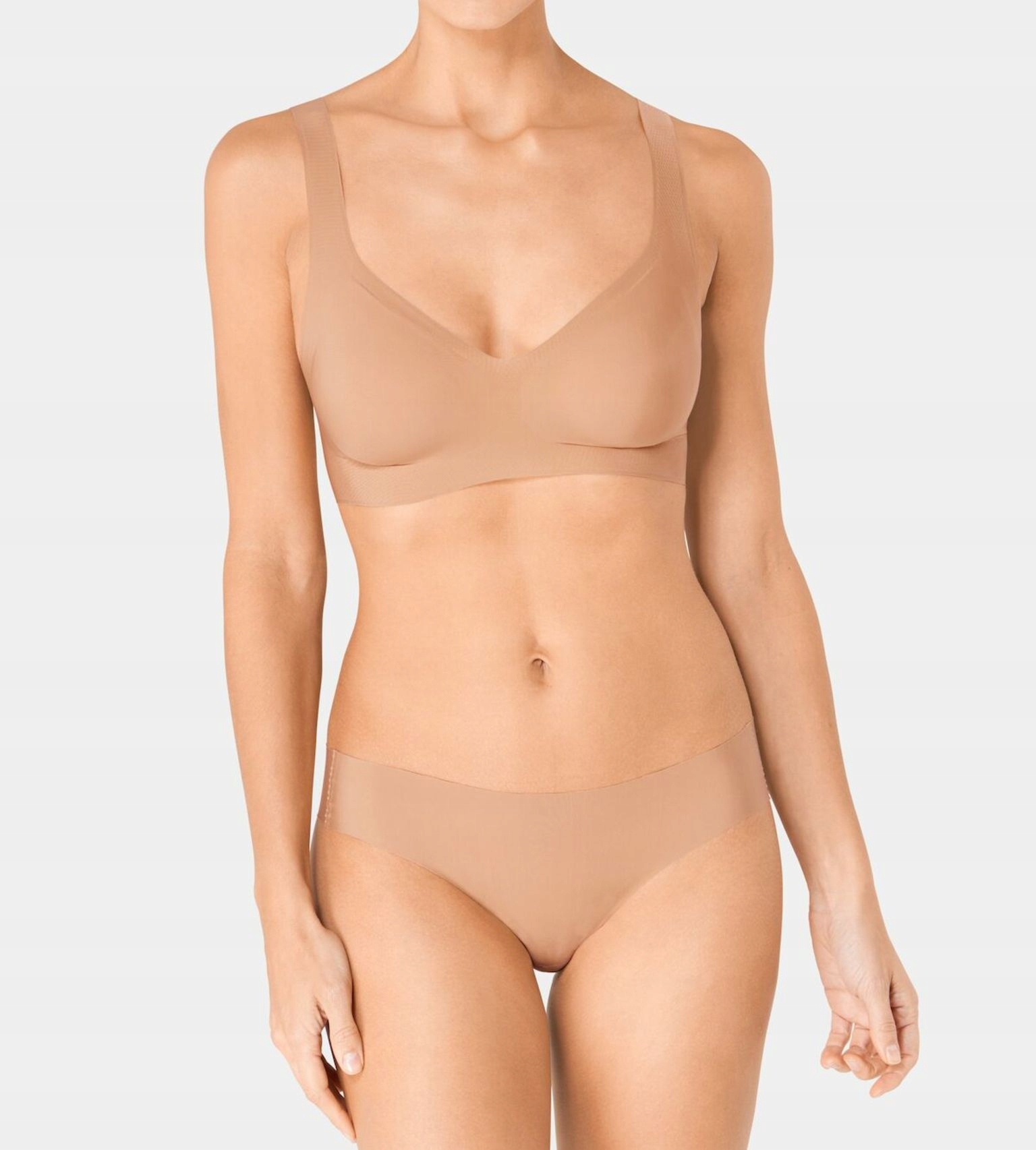 Sloggi Zero Feel Bralette EX to komfortowy biustonosz w formie topu, łączący lekkość, przewiewność i niewidoczność pod dopasowaną odzieżą. Usztywniane miseczki z możliwością wyjęcia wkładek push-up zapewniają subtelne podniesienie i naturalne modelowanie biustu. Bezszwowa konstrukcja z laserowo wyciętymi brzegami daje efekt “drugiej skóry” i maksymalny komfort noszenia.