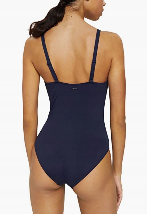 ESPRIT Strój kąpielowy damski w granatowym kolorze to połączenie stylu i komfortu. Miękki biustonosz z fiszbinami zapewnia wsparcie i modelowanie biustu, a dół w fasonie tanga gwarantuje wygodę podczas noszenia. Regulowane ramiączka umożliwiają idealne dopasowanie do sylwetki.