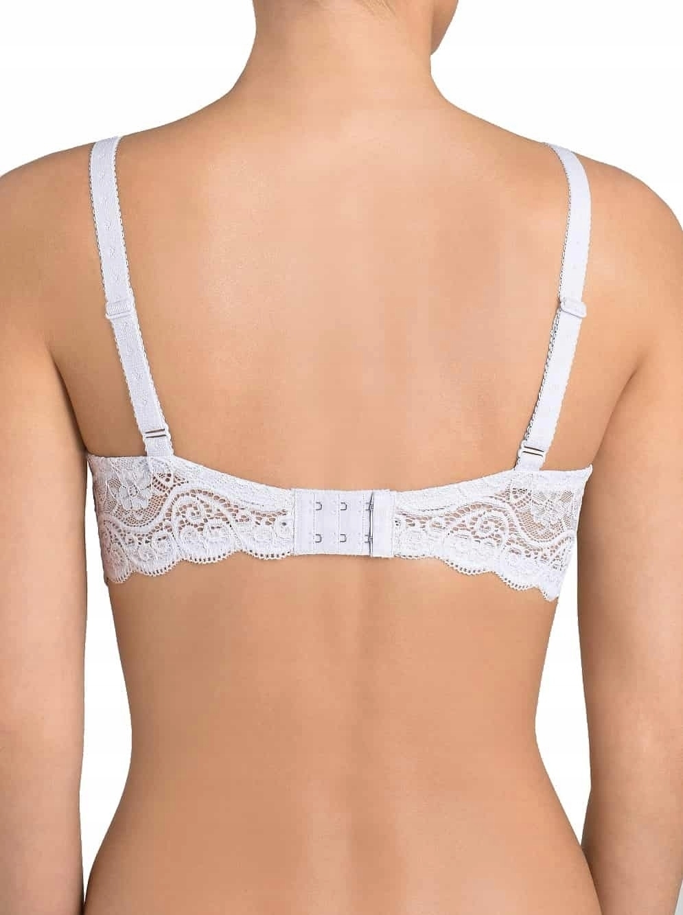 - piękne koronkowe zdobienia na ramiączkach, bokach i między miseczkami,