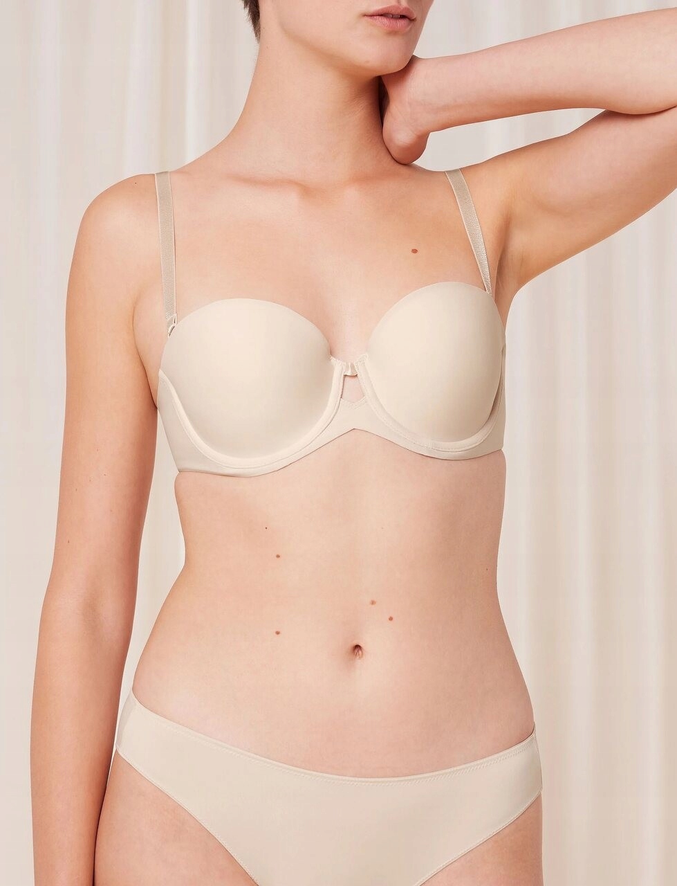 – biustonosz typu bardotka/balkonetka , idealnie sprawdzi się pod ubrania z odkrytymi ramionami lub pod pod mocno wydekoltowane sukienki np. z gorsetową górą,