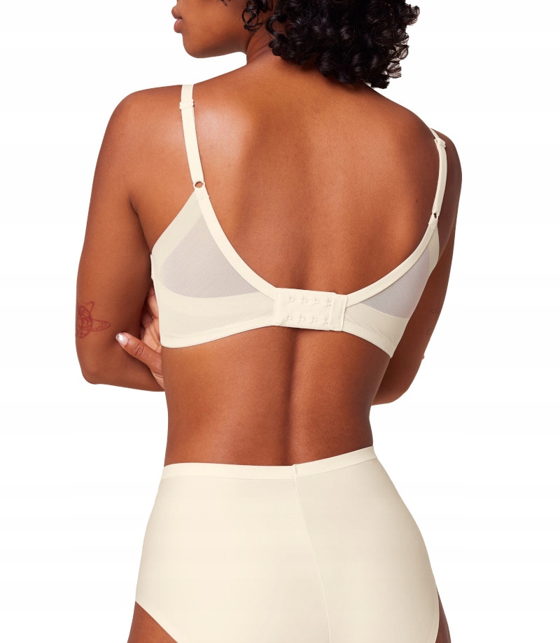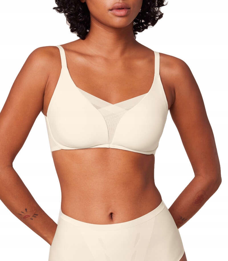 Idealny na co dzień, wyjątkowy biustonosz bez fiszbin z delikatnie usztywnianymi miseczkami, w pełni dyskretny pod ubraniem, wykonany z gładkiego, elastycznego materiału. Innowacyjny biustonosz Shape Smart marki Triumph gwarantuje stabilizację i uczucie lekkości, a inteligentna tkanina dopasowuje się do kobiecych kształtów. Dzięki 5 rozmiarom, które zastępują 43 tradycyjne, model zapewnia idealne dopasowanie.