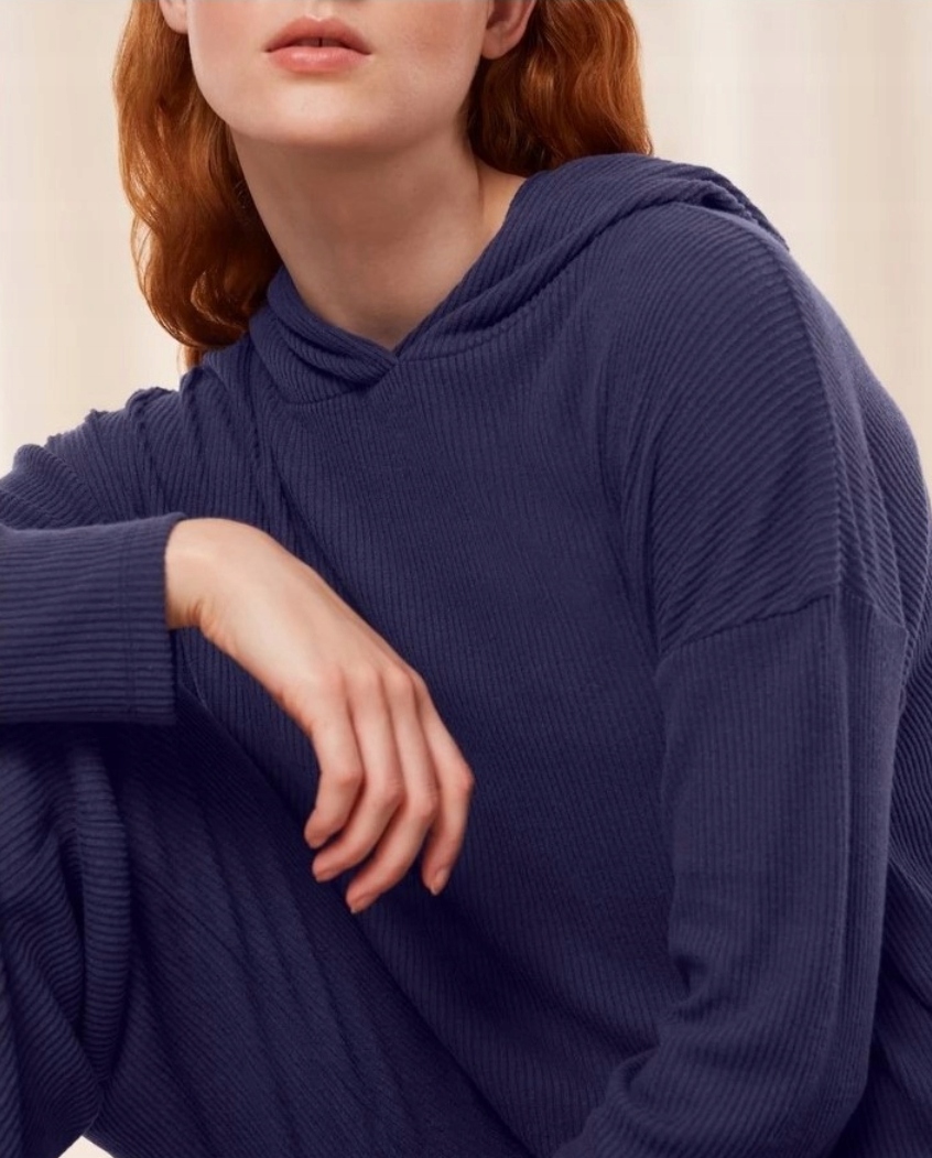 • Bluza damska z kapturem i długimi rękawami o luźnym fasonie