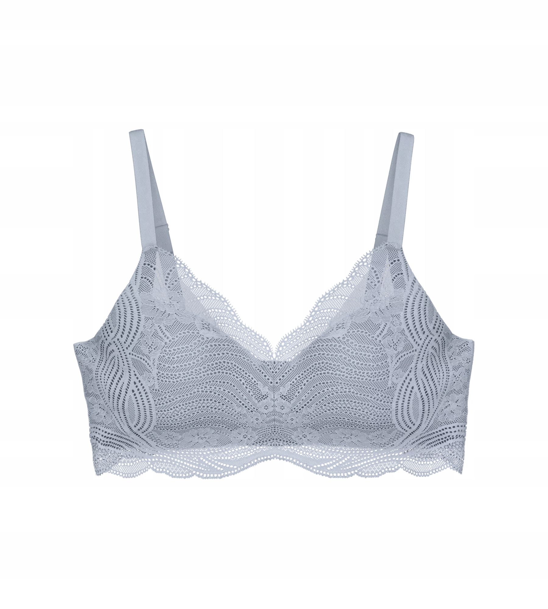 - Materiał przodu: miękki jersey pokryty koronką ze stretchem, perfekcyjnie dopasowujący się do biustu