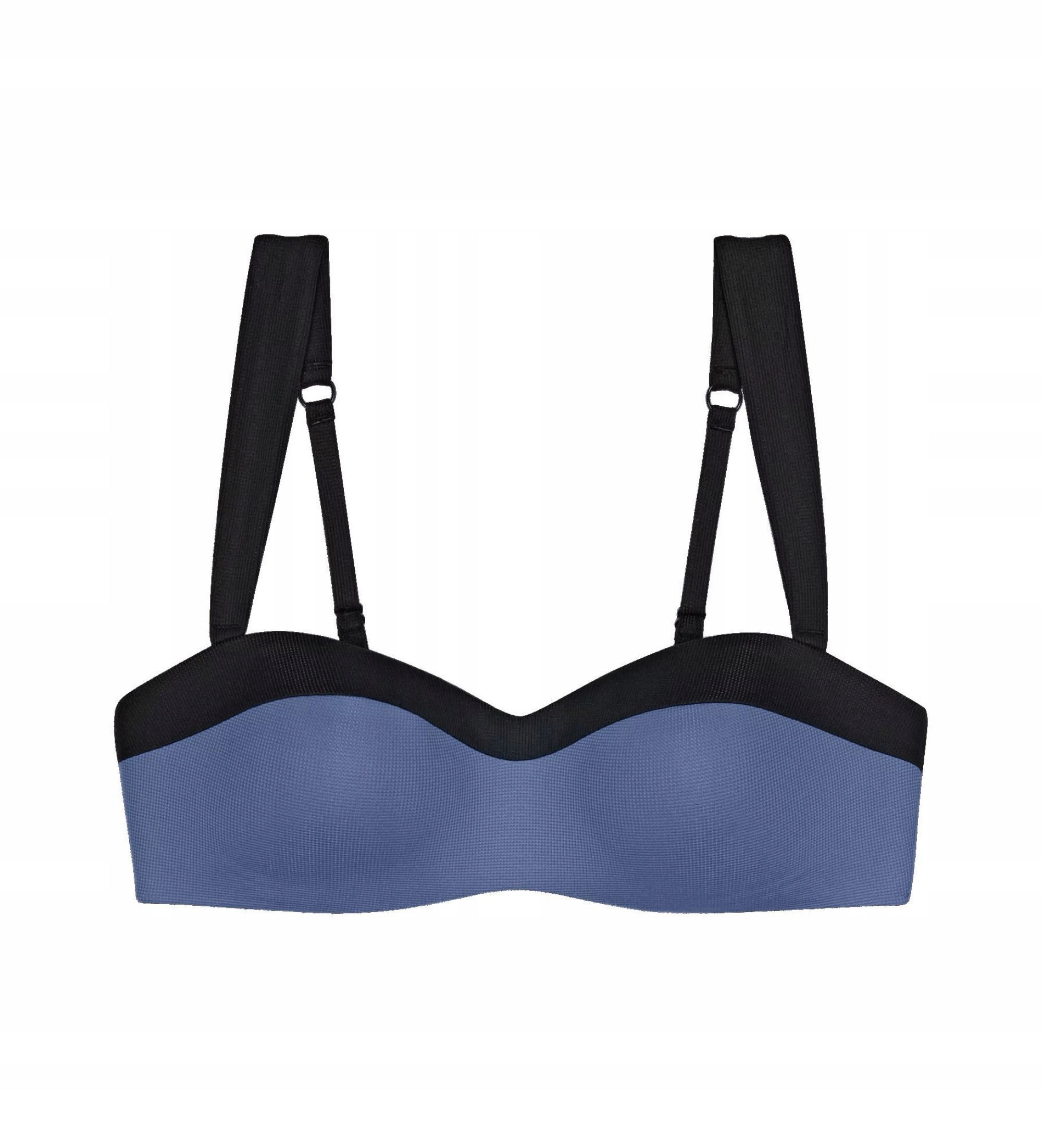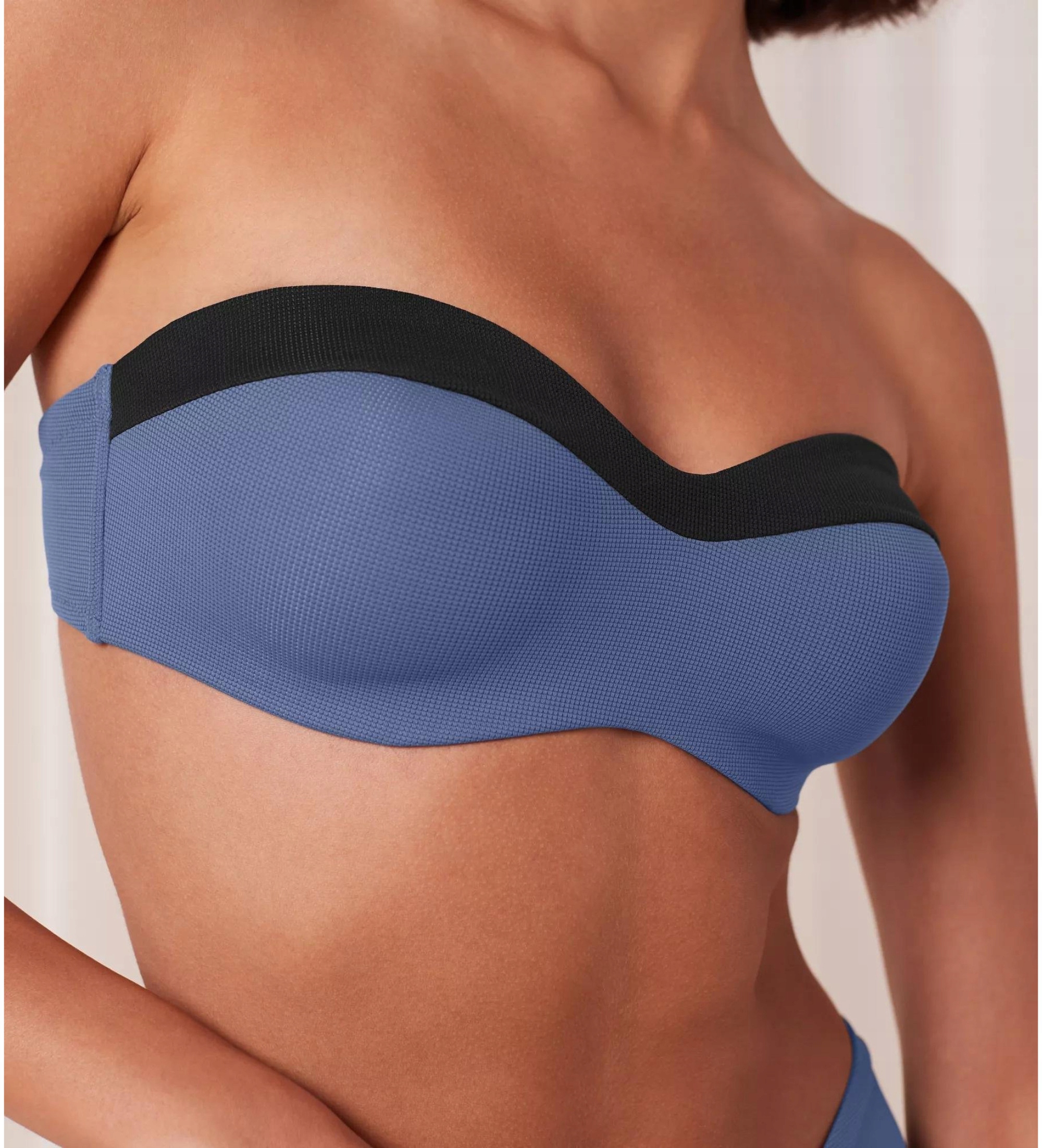 Biustonosz bikini o fasonie bardotki, lekko usztywniony i termicznie formowany, zapewnia doskonałe podtrzymanie i modelowanie biustu. Boczne elastyczne fiszbiny gwarantują dodatkowe wsparcie.