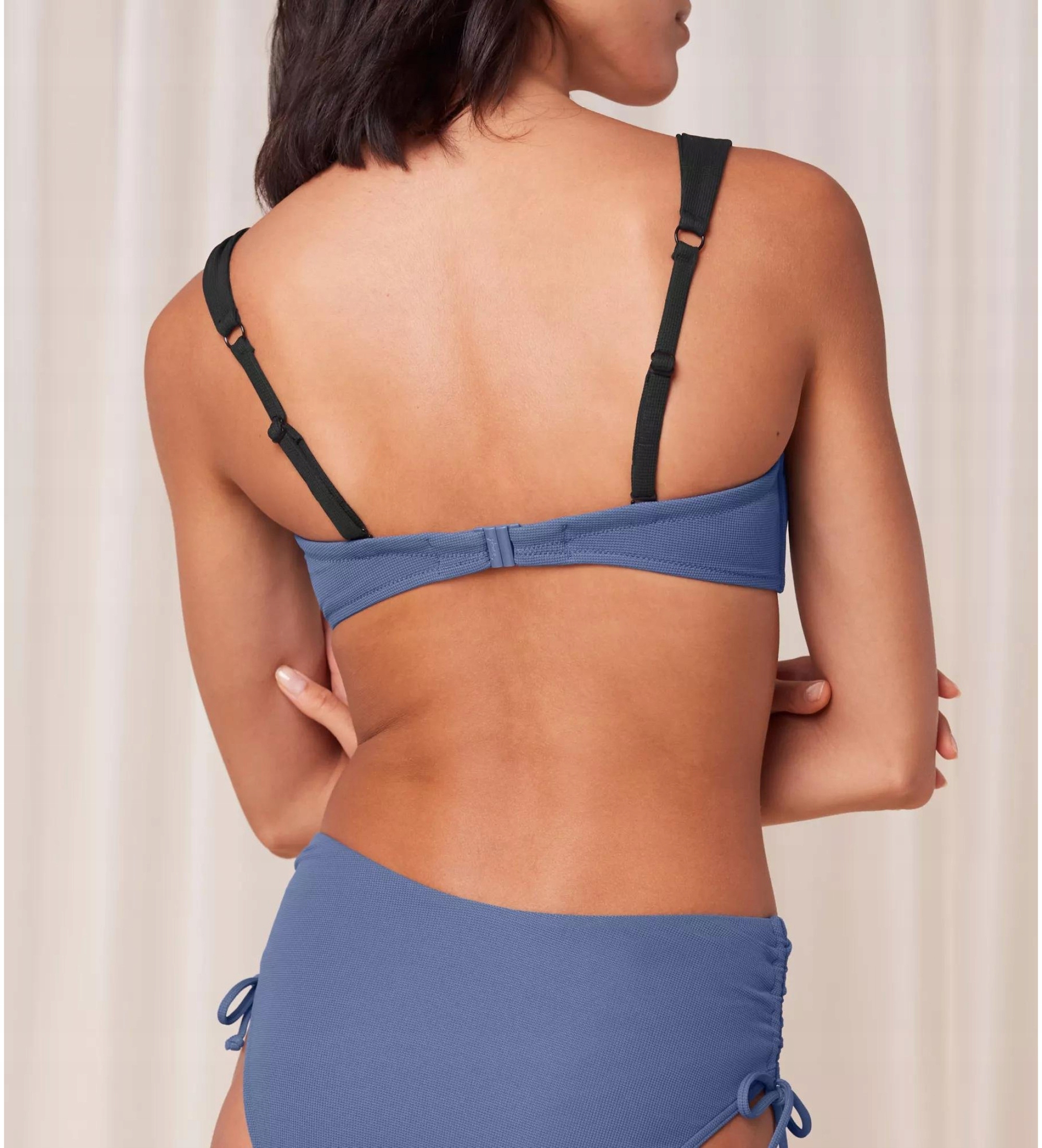 Biustonosz posiada odpinane, regulowane ramiączka oraz komfortowe silikonowe podszycie, które umożliwia noszenie go bez ramiączek. Dzięki technologii Quick-Dry materiał wysycha sześciokrotnie szybciej niż tradycyjne biustonosze kąpielowe.